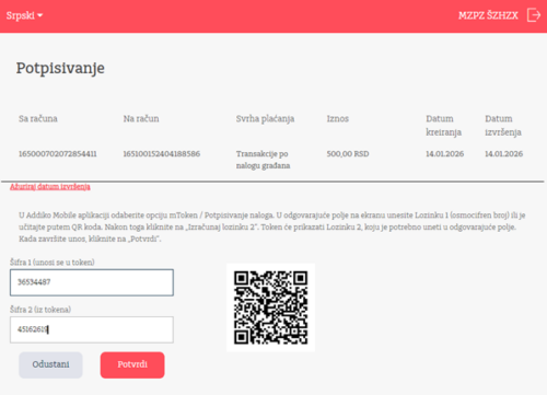 Kako se potvrđuju nalozi mTokenom?