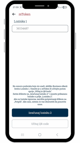 - Lozinka 2– kreirate je u mTokenu: